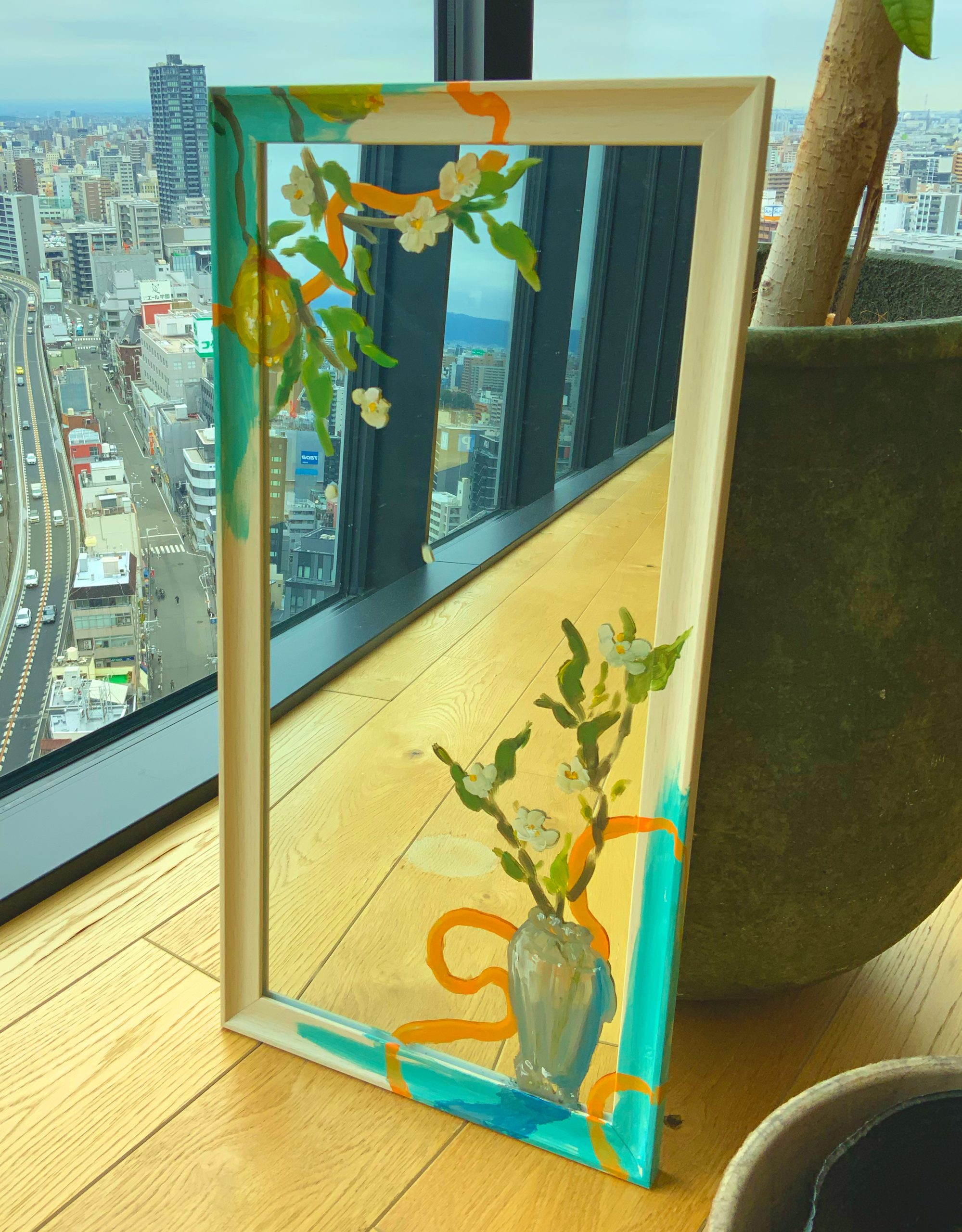 MIRROR ART - レモンの木と花 Lemon Tree and flowers 『ミラーアート レモンの木と花』 ミラーに絵を描く、新セッションが登場しました◎ 清々しいレモンに花を添えて、お部屋のインテリアにいかがですか? 毎日ハッピーになること間違いなしの作品が出来上がります! ミラーサイズ:幅300 x 奥行19 x 高さ600 (mm) 【 Artbar Osaka-Paint &