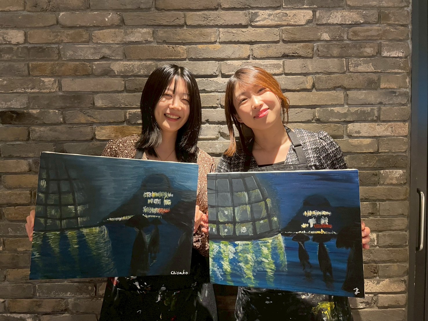 Take a sip. Unwind. Let’s paint at Artbar Osaka! Only at Artbar can you enjoy all-you-can-drink wine, soft drinks, plus light snacks. All levels are always welcome, you don’t have to be a pro to paint! Let’s get creative, meet new people, and hang up your masterpiece at home! No experience necessary.