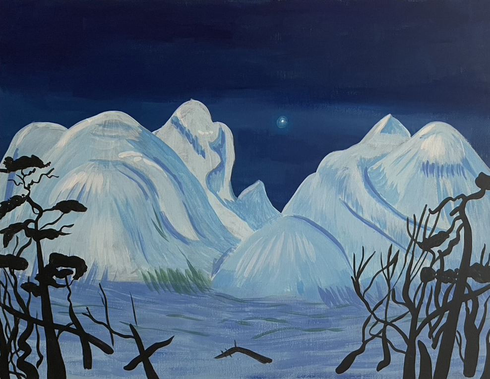 The winter nights of Norway are wrapped in deep silence and gentle light. Snow-covered towns and forests glisten under the moonlight, filled with a crisp, tranquil air. Why not imagine the Norwegian winter and try painting this scene yourself?