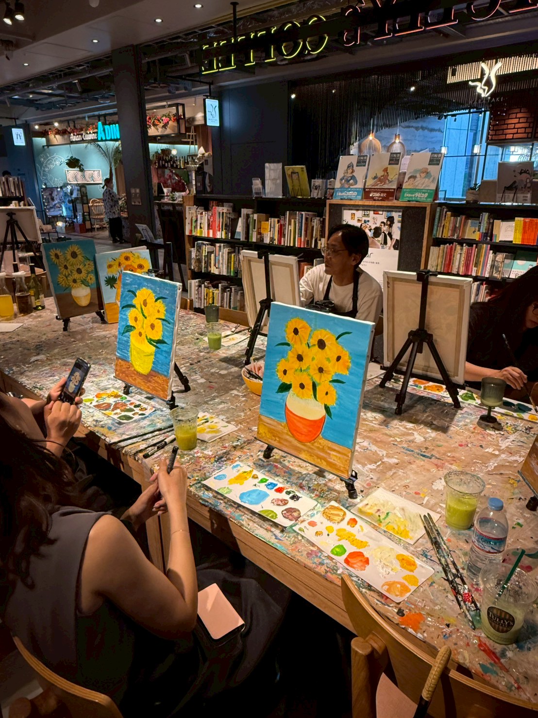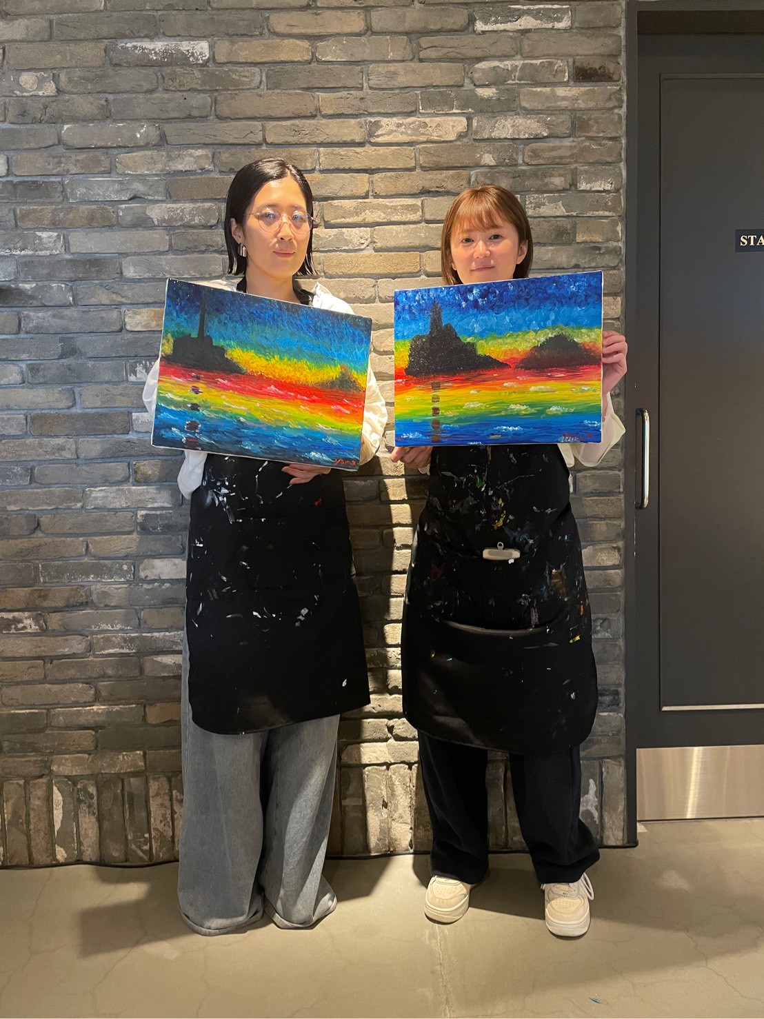 Take a sip. Unwind. Let’s paint at Artbar Osaka! Only at Artbar can you enjoy all-you-can-drink wine, soft drinks, plus light snacks. All levels are always welcome, you don’t have to be a pro to paint! Let’s get creative, meet new people, and hang up your masterpiece at home!No experience is necessary!