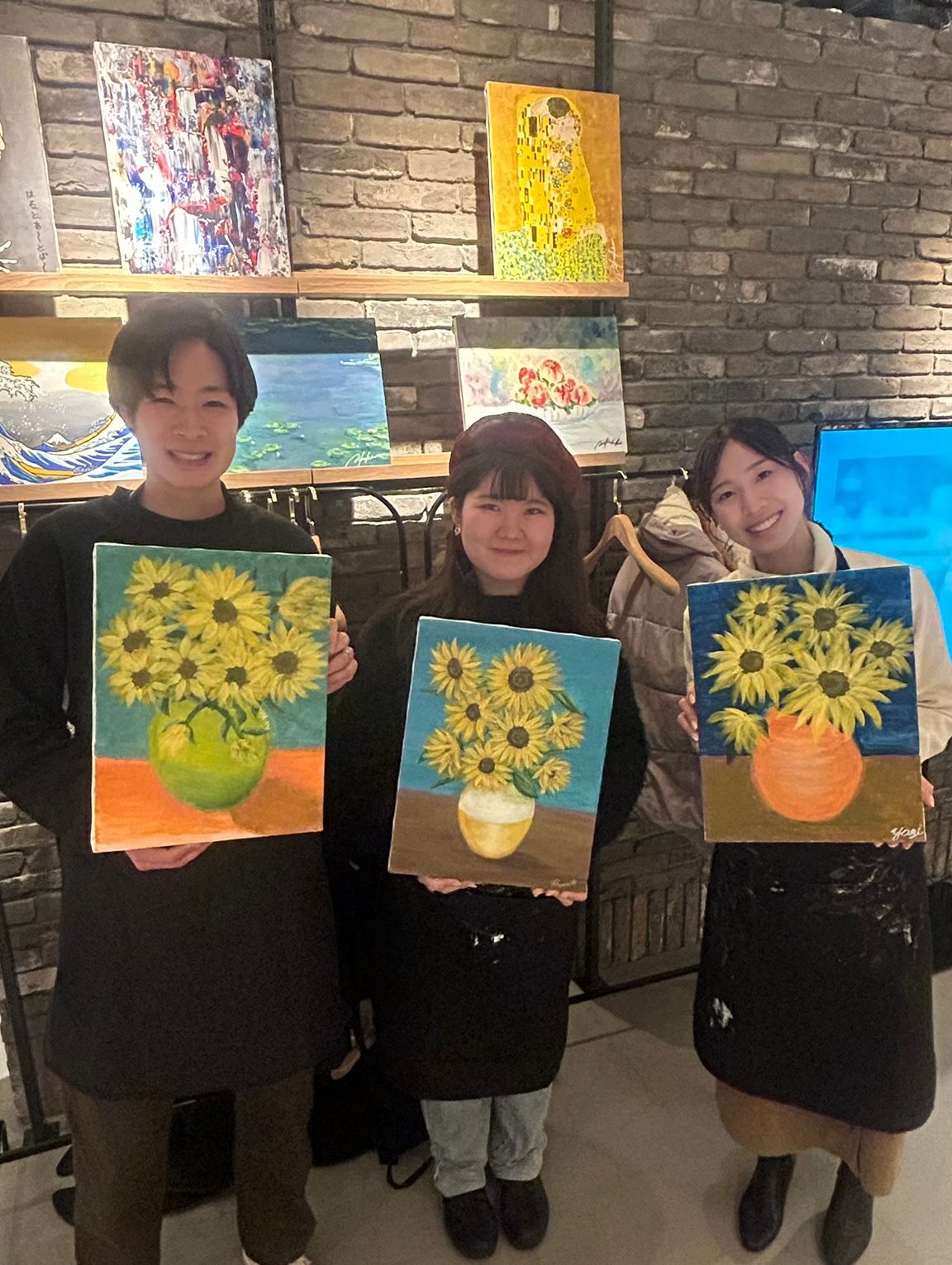 Take a sip. Unwind. Let’s paint at Artbar Osaka! Only at Artbar can you enjoy all-you-can-drink wine, soft drinks, plus light snacks. All levels are always welcome, you don’t have to be a pro to paint! Let’s get creative, meet new people, and hang up your masterpiece at home!