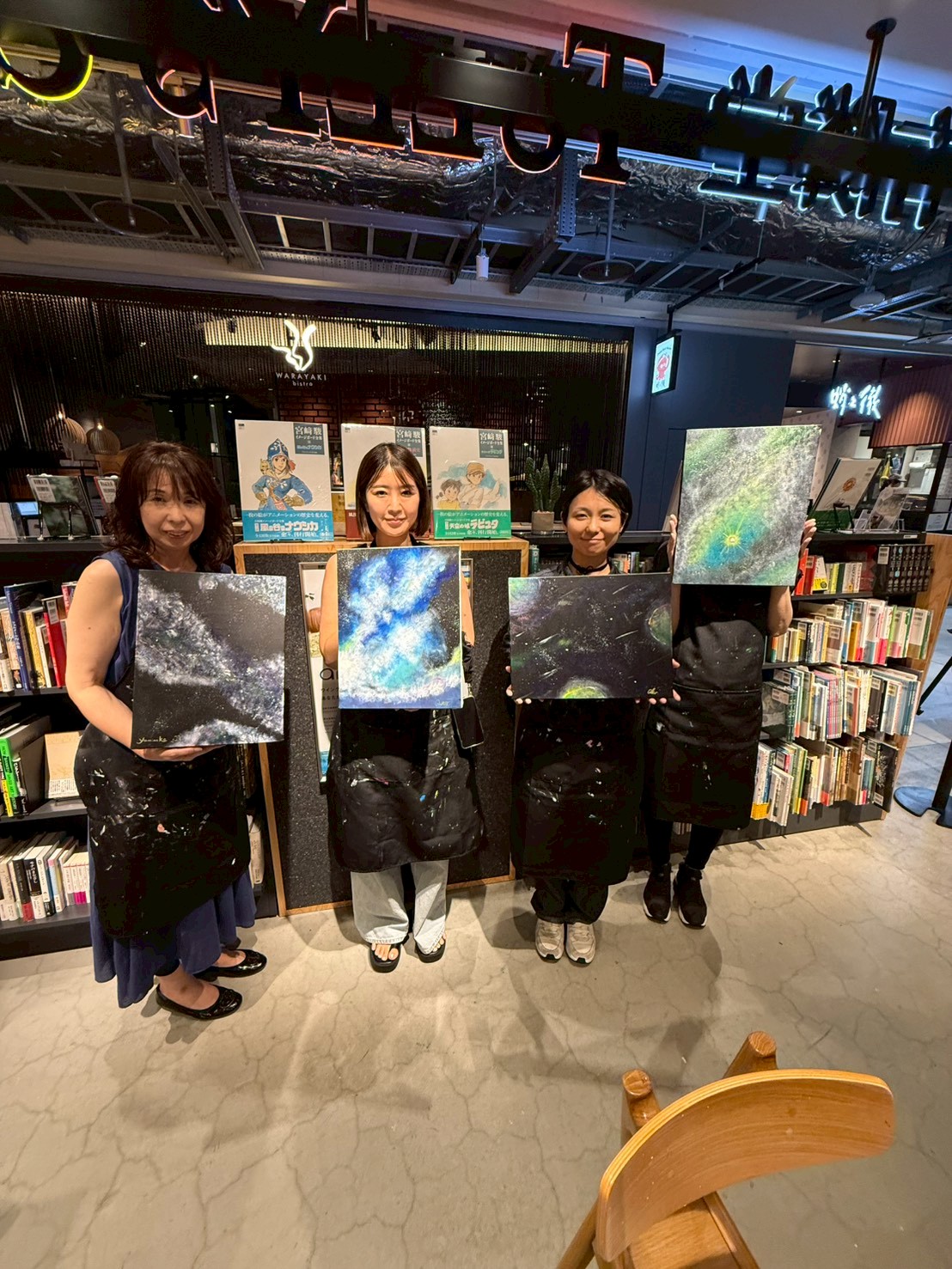Brushes and even other painting materials are used to finish the galaxies in more detail. What kind of galaxies would you like to visit? Let your imagination run wild and experience it in the unique atmosphere of a night session!